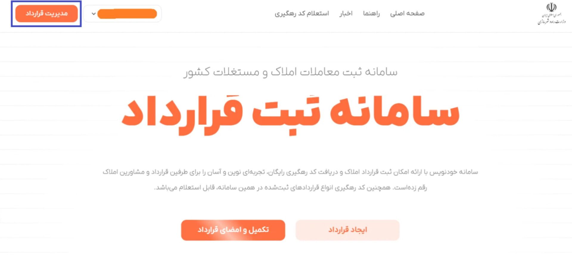 6.حال برای ورود به صفحه پیشخوان، کافی است روی دکمه “مدیریت قرارداد” کلیک کرده و وارد صفحه پیشخوان شوید.
