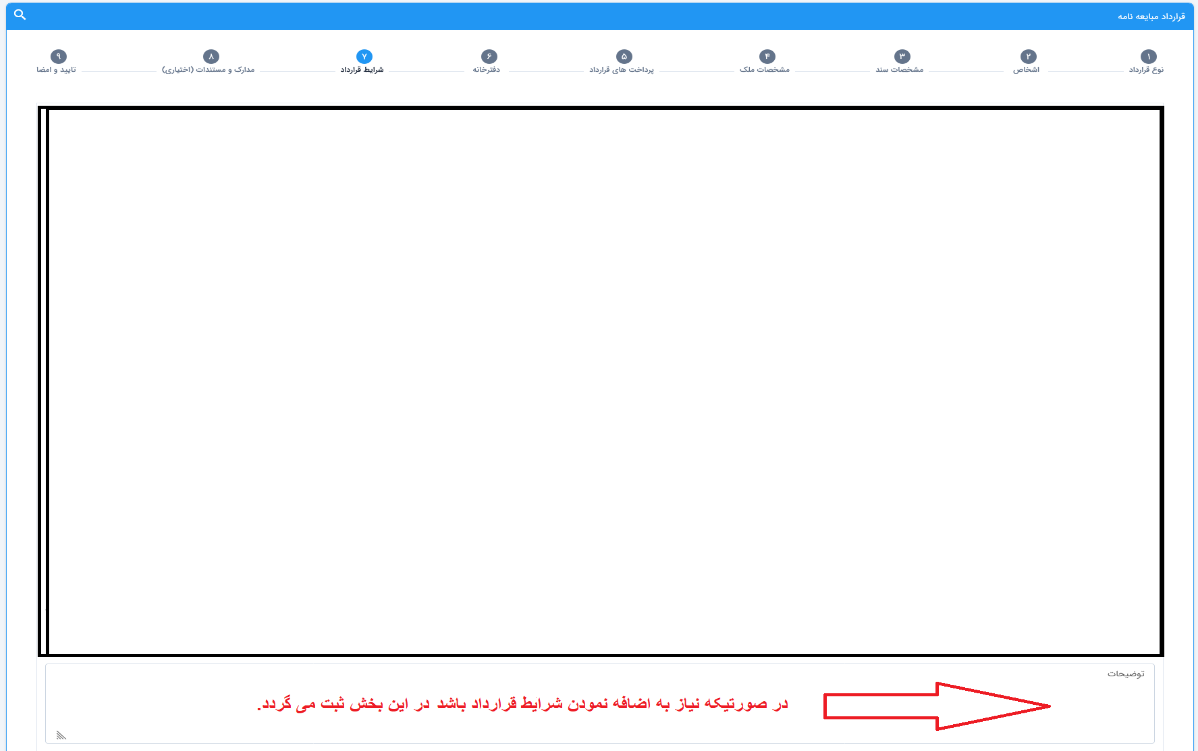 مرحله هفتم) در صورتیکه نیاز به اضافه کردن شرایط قرارداد باشد، در این بخش اضافه میگردد.