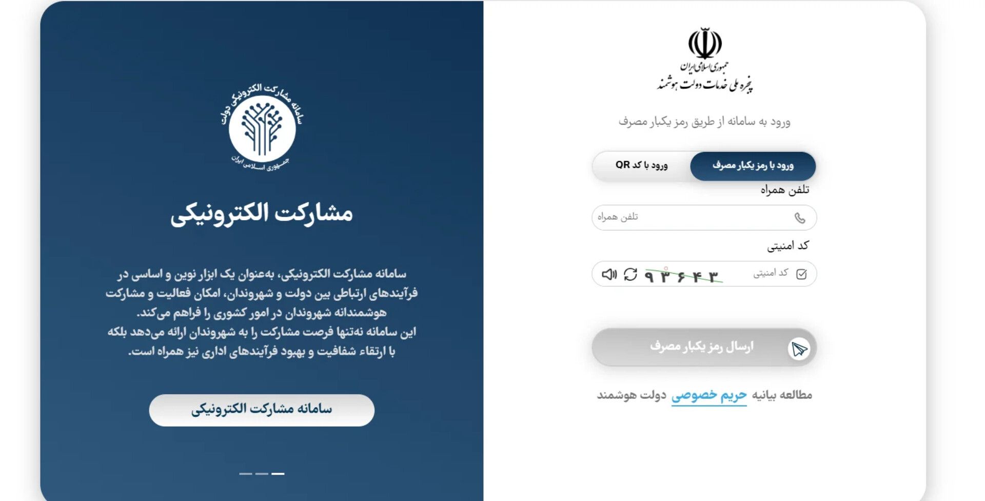 5. بعد از انتخاب نوع ورود، شما به پنجره ملی خدمات دولت هوشمند برای احراز هویت منتقل خواهید شد.