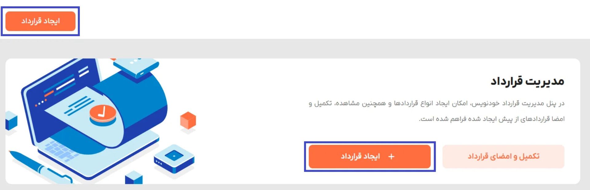 7. پس از ورود به پیشخوان، میتوانید روی “ایجاد قرارداد” کلیک کنید.