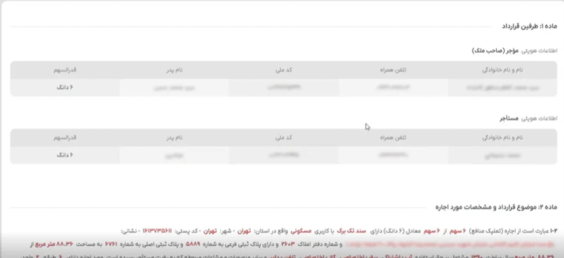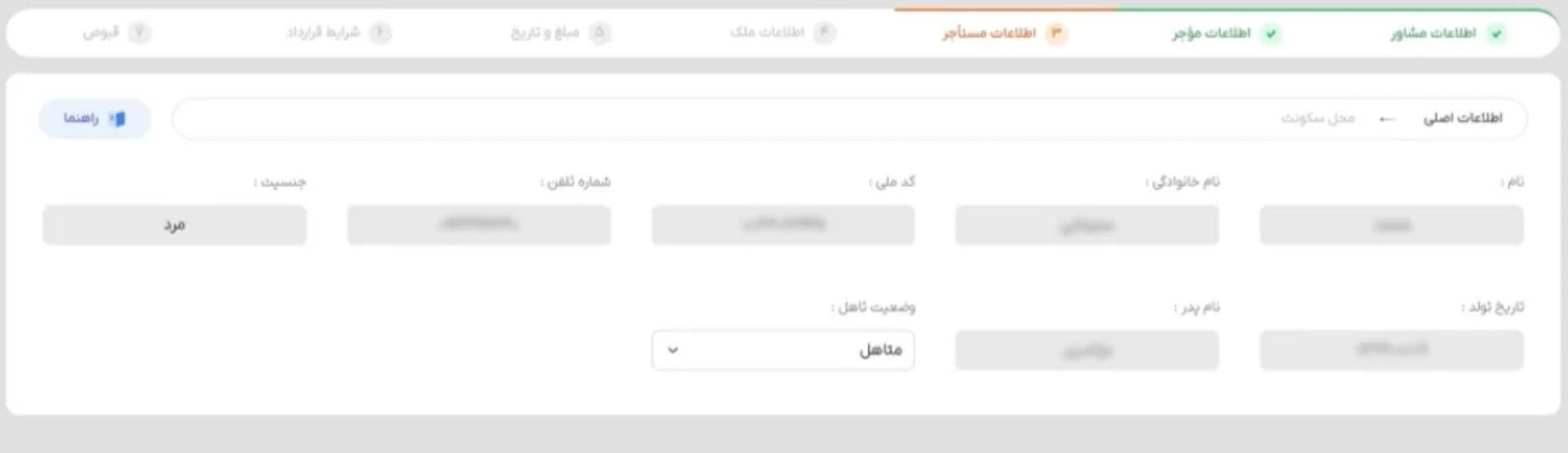 12.در مرحله سوم، باید اطلاعات مستاجر را مانند اطلاعات موجر مشاهده و بررسی کنید.