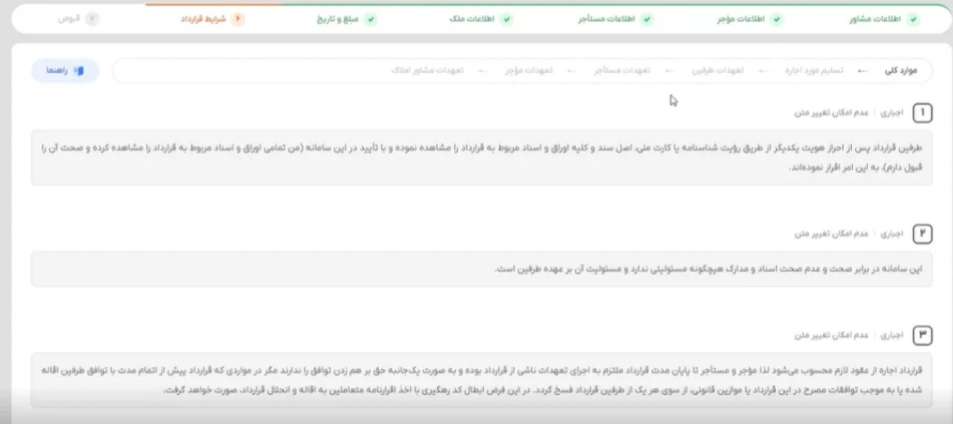 با تکمیل این بخش، مراحل ایجاد قرارداد به پایان میرسد، و قرارداد آماده امضا و ثبت نهایی خواهد بود.
