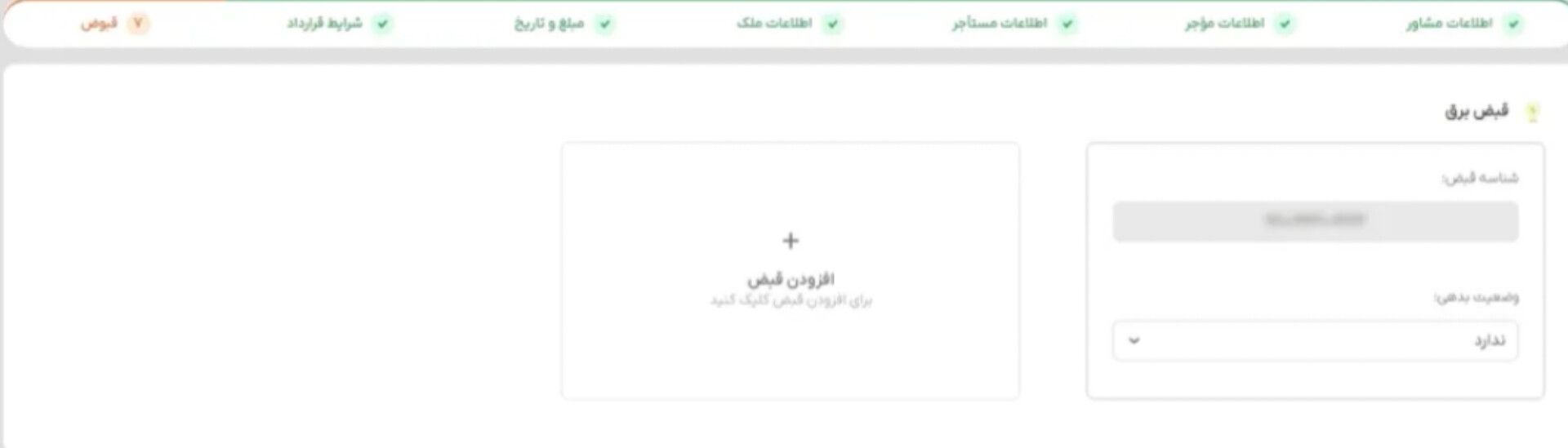 در این مرحله، لازم است اطلاعات مربوط به قبض برق ملک را وارد کنید. این اطلاعات شامل شناسه قبض برق است که به تأیید نهایی ملک مورد معامله کمک میکند.