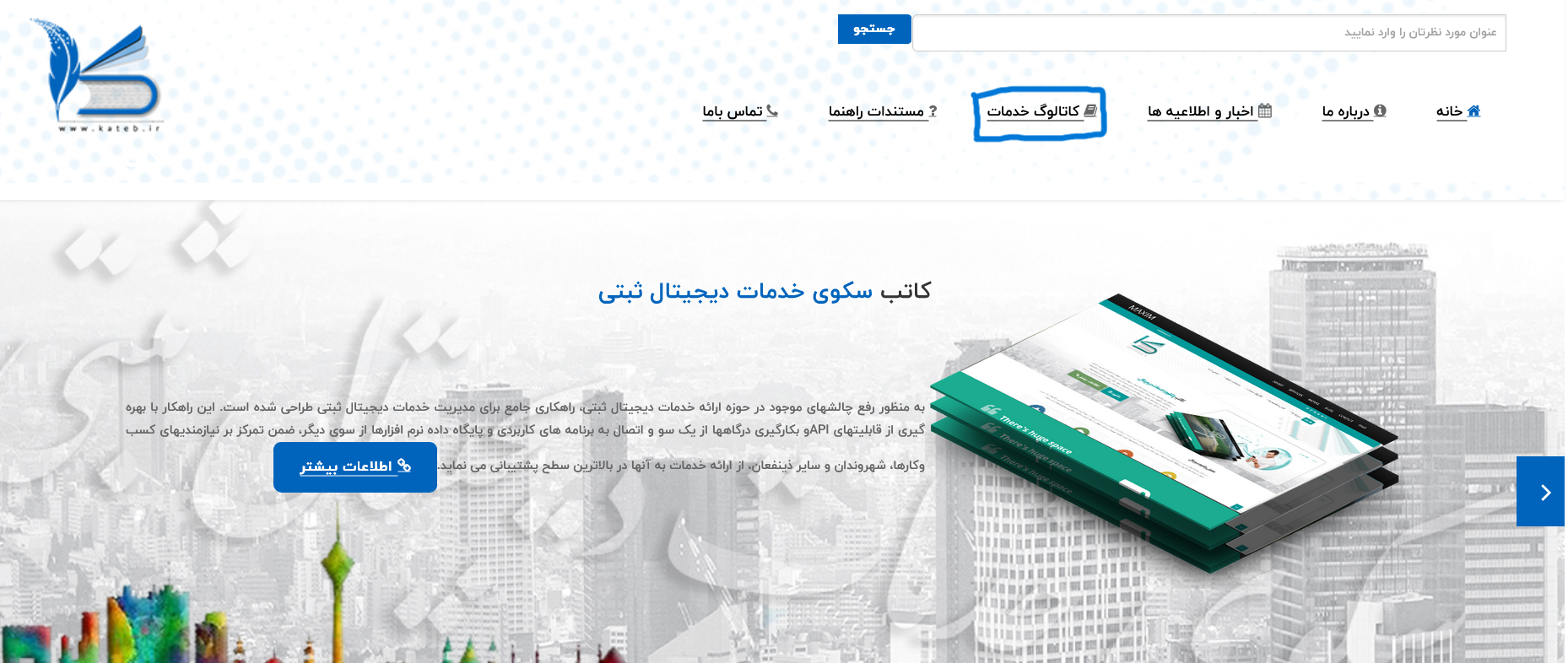 زمانیکه وارد سایت سامانه کاتب میشوید، با کلیک بر روی کاتالوگ خدمات، به فهرست خدمات ثبتی دسترسی پیدا میکنید.