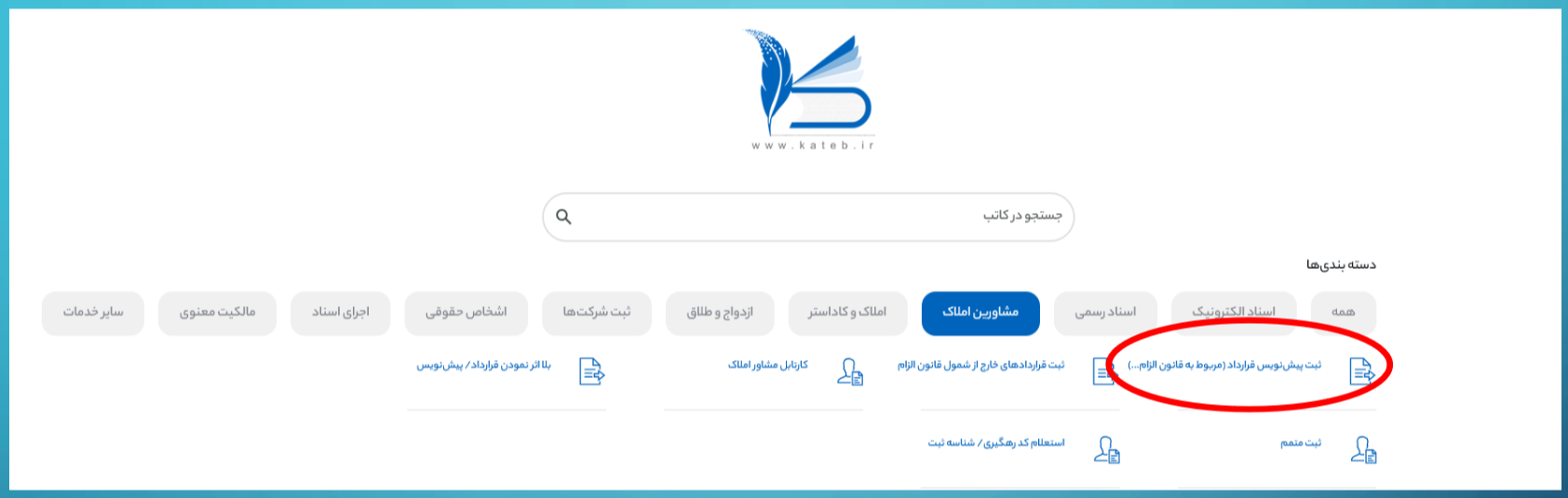 در این مقاله سعی بر آن داریم تا یکی از خدمات بسیار کاربردی این سامانه؛ آموزش ثبت نام و ثبت پیش نویس قرارداد در کاتب مختص مشاورین املاک را آموزش دهیم.