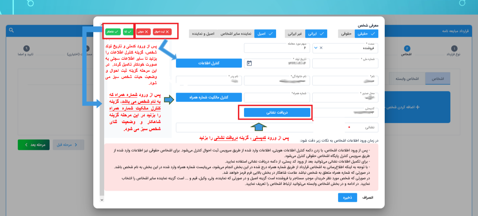 مرحله دوم) در ادامه اطلاعات همه طرفین قرارداد را مطابق تصویر زیر وارد نمایید.